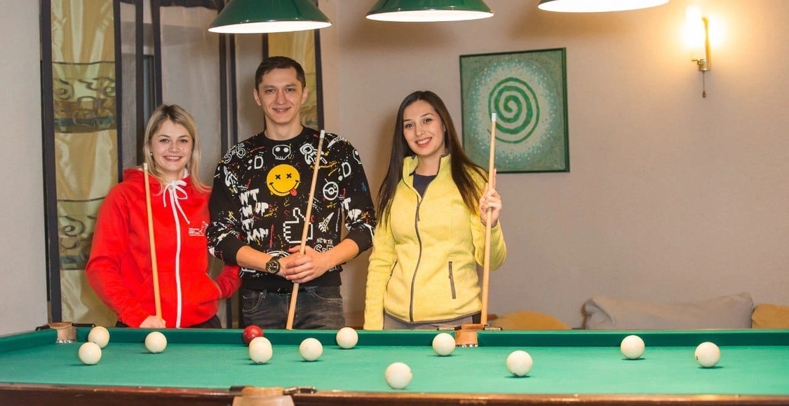 - Для любителей интеллектуального досуга в корпусах установлены 2 профессиональных бильярдных стола
